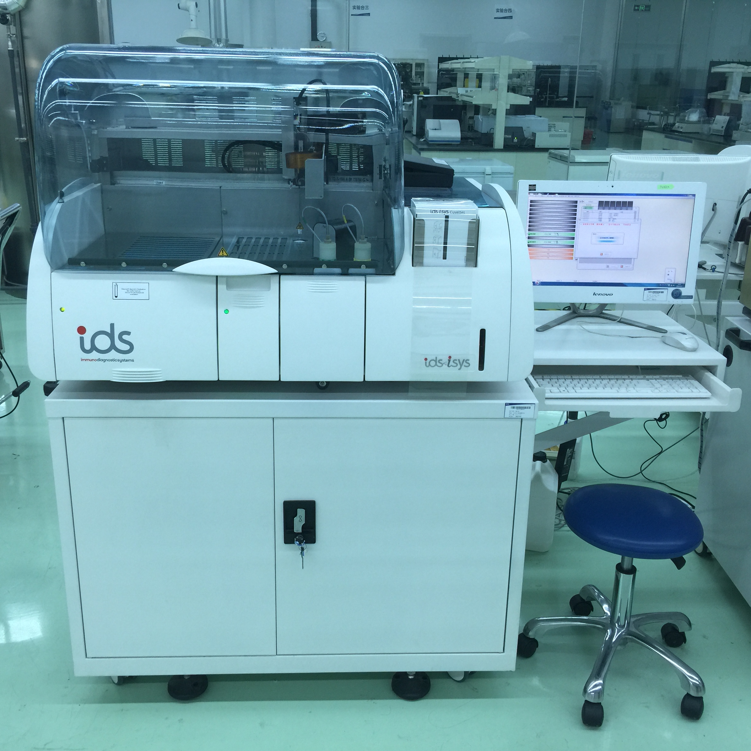 生化免疫分析实验区主要包括全自动生化分析仪和化学发光分析仪实验区,主要承担生化试剂和免疫发光试剂中间品和成品的质量控制监测。主要检测仪器包括日立7180全自动生化分析仪、AU5800、AU680、BECKMAN DXC600,登录入口 CI1000化学发光分析仪、IDS-iSYS 全自动分析仪等。
