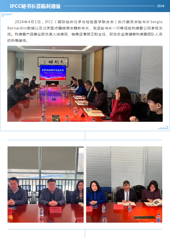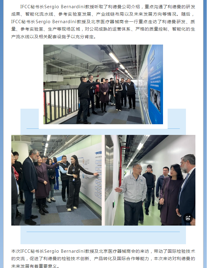 IFCC执行委员会秘书长及北京医疗器械商会 领导莅临登录入口公司参观交流