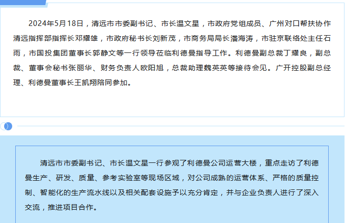 清远市市委副书记、市长温文星一行 莅临登录入口指导工作